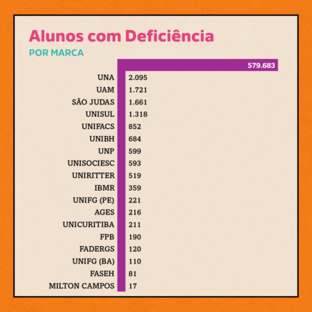 Em relação às marcas que apresentaram aumento relevante de alunos com algum tipo de deficiência, são destacadas: